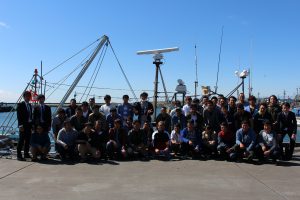 漁協青年部17人と、緊張した面持ちで対面した部員。お互いの活動紹介や質疑応答などを行いました。部員からの「冬場の仕事は?」の問いに対し、「1年で1番辛いスケソウダラ漁をします」と回答がありました。
